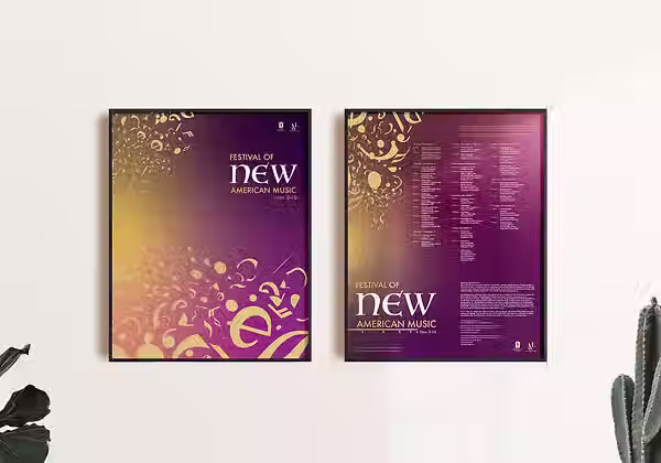 The Campaign Project was focused on designing two 16"x20" posters for the Festival of New American Music that would be taking place at Sacramento State. The first poster had to only include a name and a visual element along with the Sac State and Arts & Letters logo. The second poster contains the schedule of each performance followed by parking information, people who are involved the event, the website, and the title.